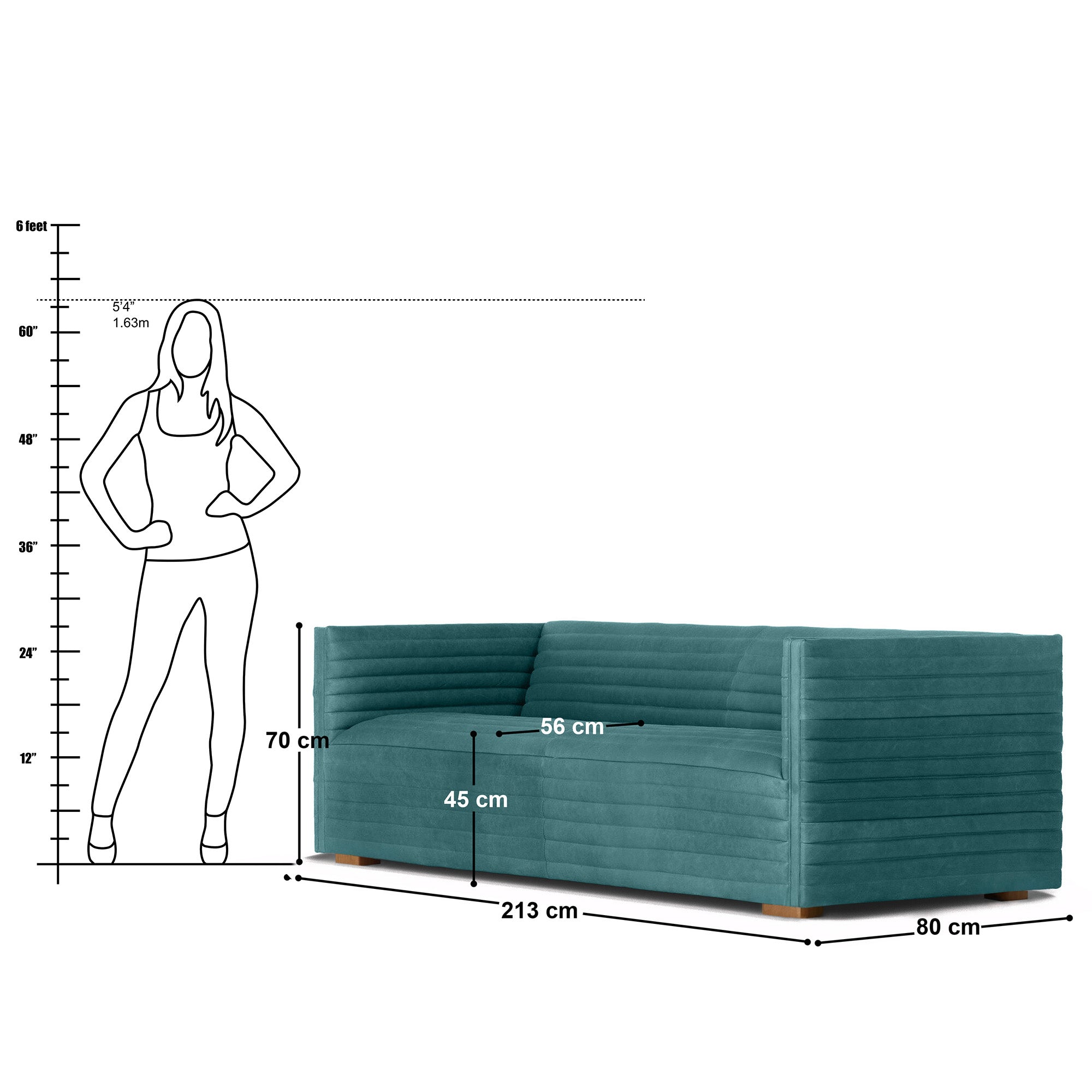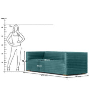 Introducing the "Luiz Tufted 3 Seater Sofa - 84", a masterpiece in design and craftsmanship. Horizontal channelling from top to bottom highlights its structured lines, making it a dramatic statement piece. Upholstered in smoothly textured Vegan Leather in Suffolk Blue, this sofa is available in a variety of materials and colours to suit any decor. Handcrafted with precision, it features soft foaming for comfortable seating.