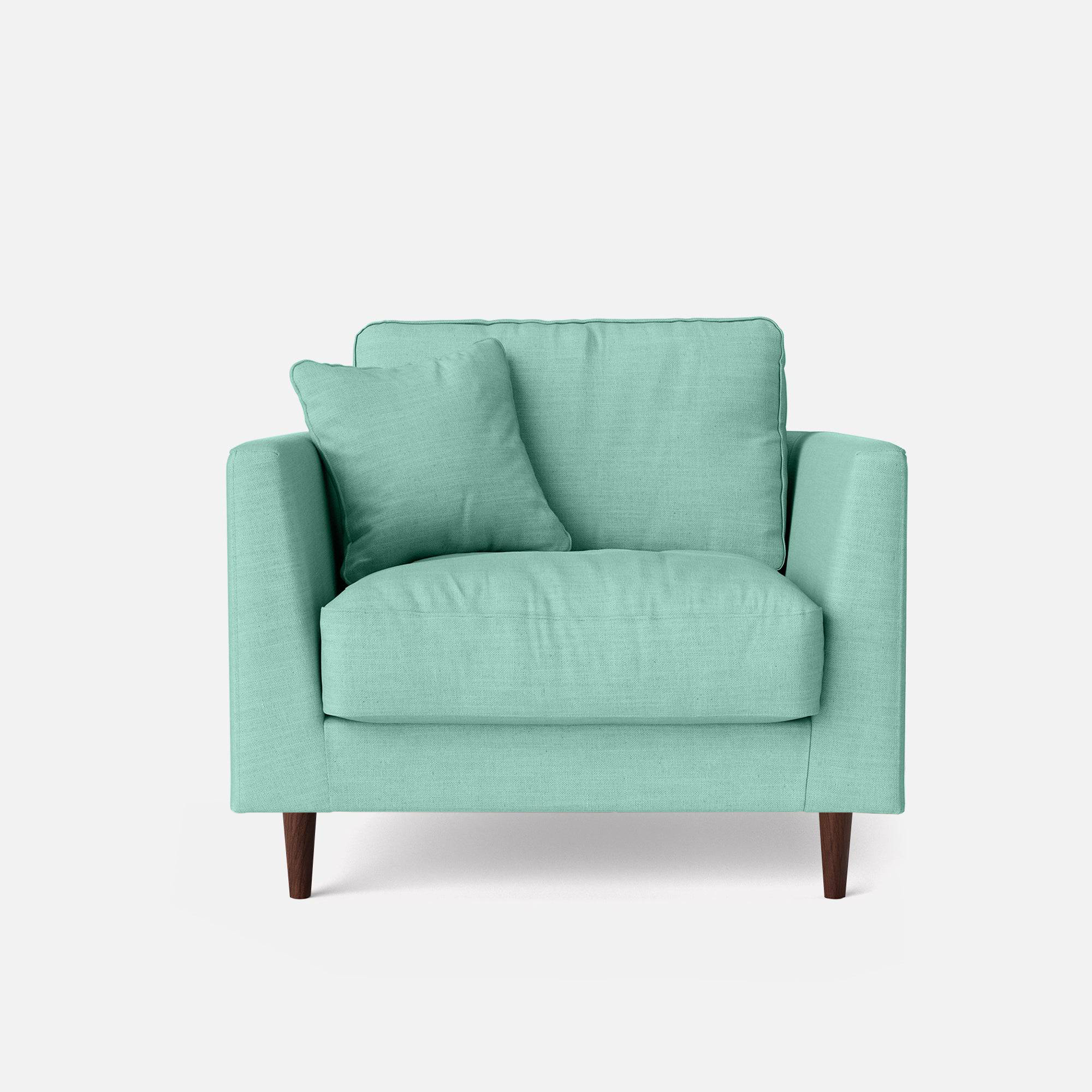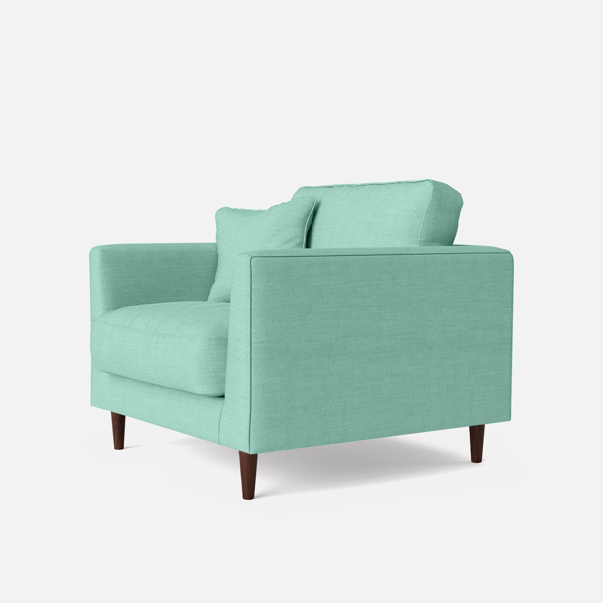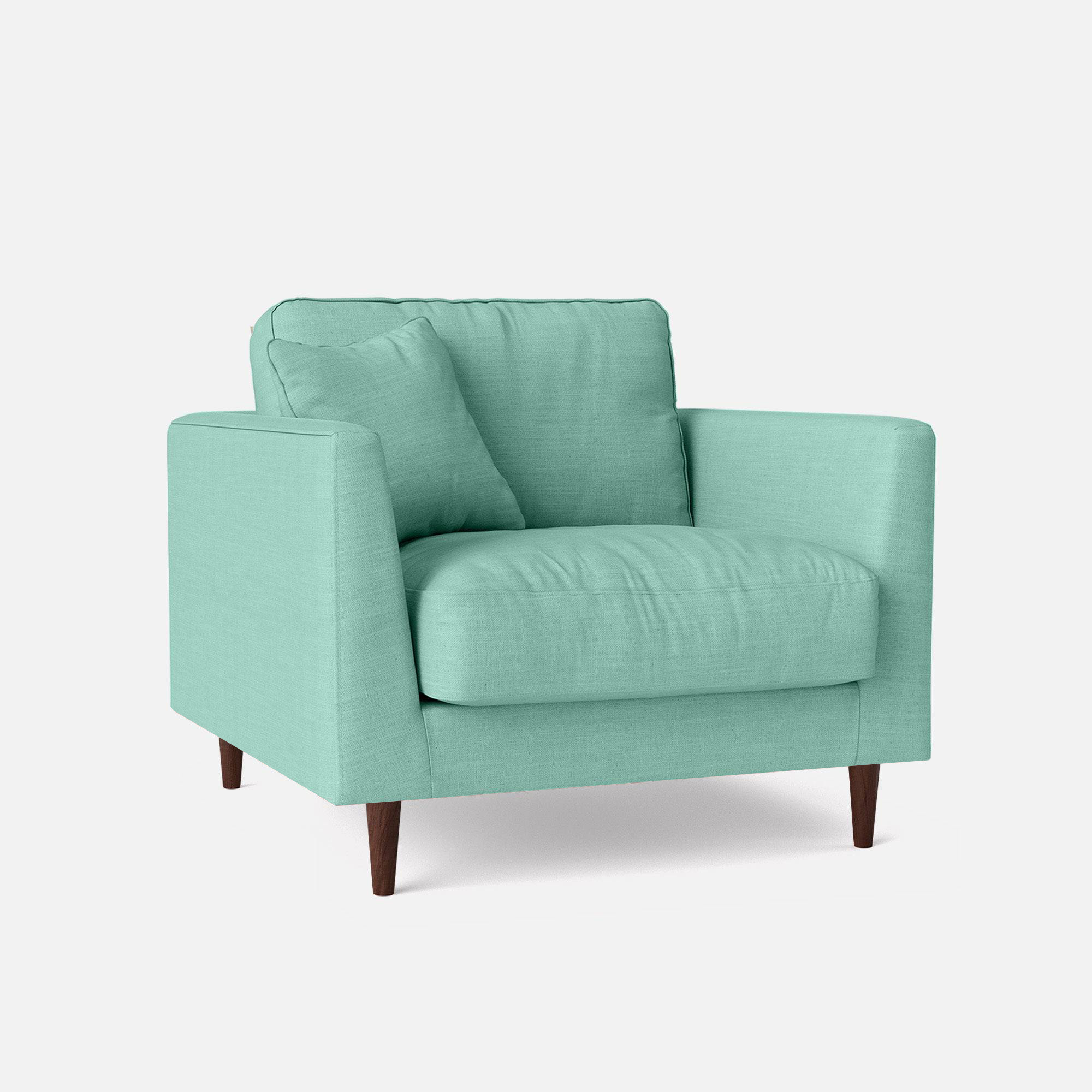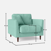 Meet the Nord Single Seater Sofa, a stylish and compact addition to your living space. With a size of 32.5 inches, it's perfect for small corners or cosy nooks. Nord boasts a distinctive sloped arm design, complemented by soft cushioning for a comfortable and contemporary look. Supported by robust solid wood legs, this sofa combines both style and stability. Dressed in a rich Tiffany Blue Cotton Blend Fabric, it adds a pop of colour and elegance to your decor.