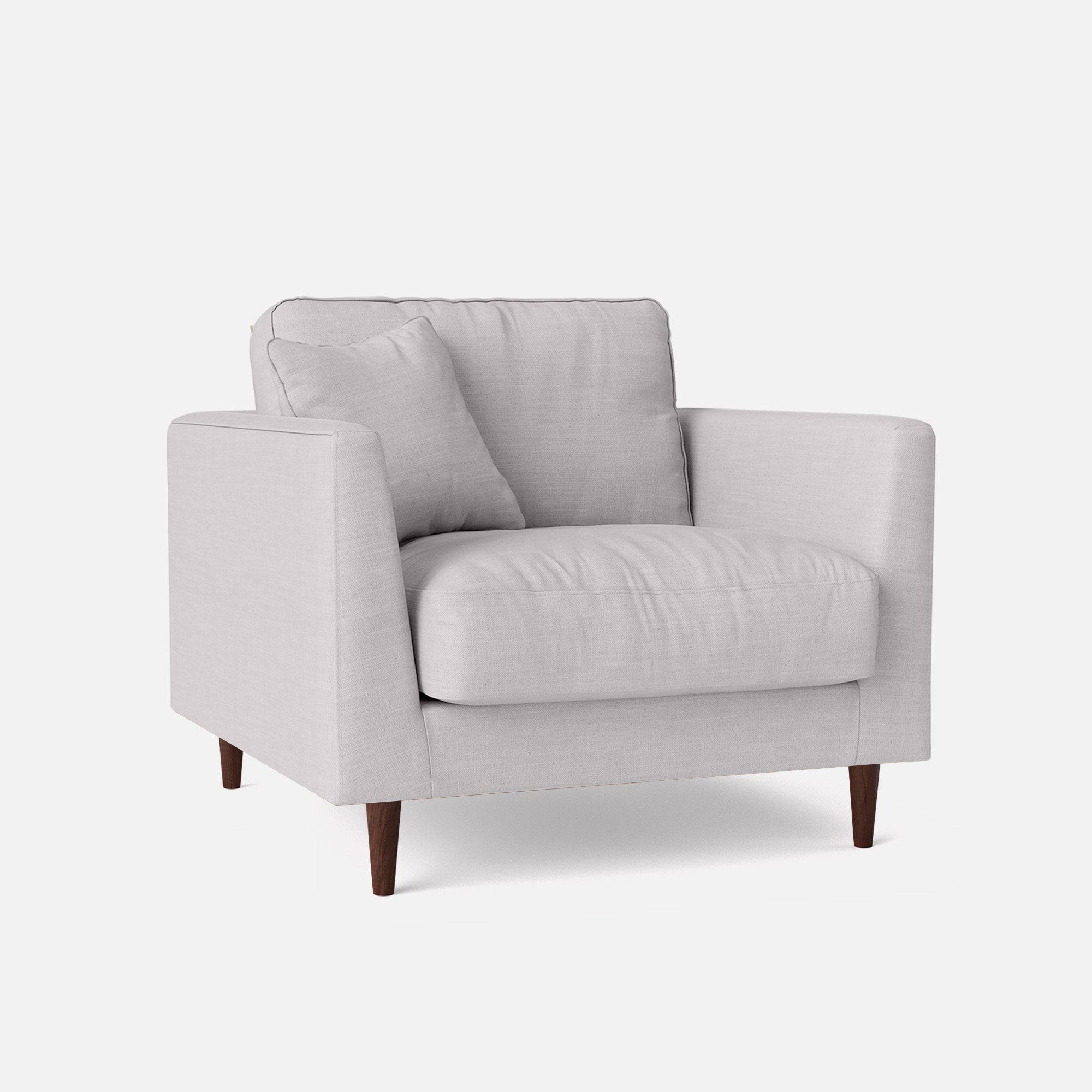 - Unique sloped arm design and plush cushioning for a stylish and comfortable appearance.