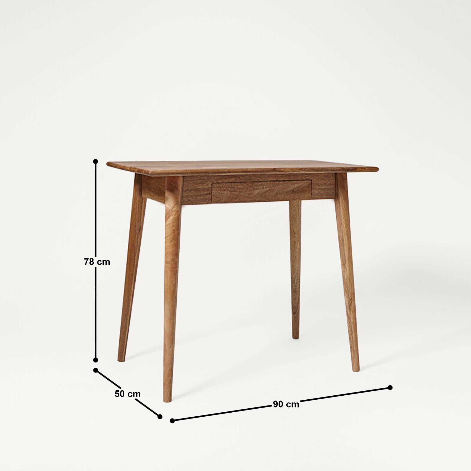 The Spartan Compact Writing Desk combines minimalist Scandinavian design with practical functionality. Featuring tapered sleek legs in a rich Natural polish on mango wood, this desk is both sturdy and stylish. Perfect for small spaces, its compact design ensures efficiency without compromising aesthetics. Handcrafted with attention to detail, the desk is available in multiple finishes to suit any décor. Whether for work or study, this desk is a refined addition to your space.